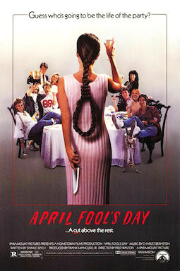 What’s the best kind of April Fools’ Day prank? What about one that occurs nowhere near April first? Actually, I’m no fan of practical jokes. They usually come at the expense of someone and really aren’t that funny. And where does that apostrophe really go anyway? Still, because of a project I’m working on, and because it was available on a streaming service I use, I watched April Fool’s Day in July. An example of holiday horror from the 1980s. Although moderately successful at the box office, the movie never took off to become a cultural icon like, say, Halloween did. In fact, I only recently heard of it. Part of the reason, I suppose, is the ensemble cast is pretty large (nine friends together for a weekend) and none of them played by big names. In case you don’t like pranks, there will be spoilers below.
