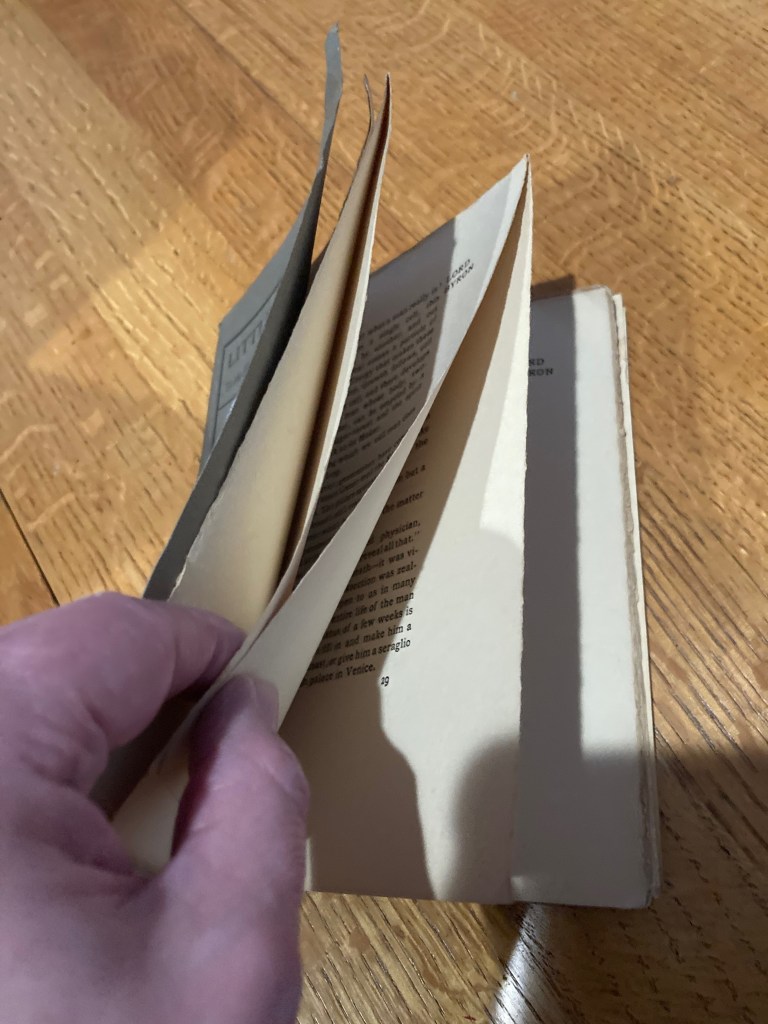 This is more common in Europe than it is in the United States. I recently bought an out of print book for my research. The pages were uncut. Now we have the internet which can be useful from time to time. The proper technique, it turns out, is to use an index card with a saw-like motion. It works extremely well. Fighting paper with paper. And I love these old books. The heavy paper. The actual, clear imprint of where the type hit the page. This was an object being crafted, not electrons cycling around a screen. When it was done you were left with something that felt permanent. Something that wouldn’t disappear when an online vendor went out of business. These old books also give you an idea of how they were made. Offset books (those made on a traditional printing press) are printed on paper that is then folded and bound together. Most modern presses also trim the edges, but you can, on rare occasions, still see where metal met paper.