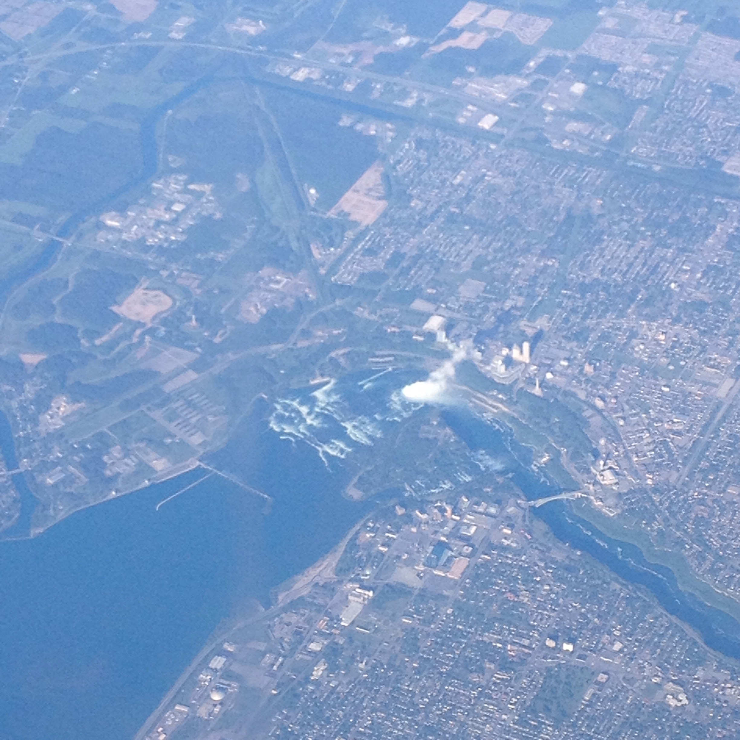 On my flight across the country yesterday, we flew over the Great Lakes. Between Erie and Ontario, we spied Niagara Falls. Navigating by air is usually a matter of inspired guesswork with me, but this was unmistakable. A large river near two Great Lakes, and a large misty curtain of spray, visible even from this altitude. Any remaining doubt was dispelled by the captain’s announcement . Here was one of the wonders of the natural world, tiny and silent from a gods’ eye view. Perspective, it occurred to me, made all the difference. Standing on the rim of that watery canyon, although the river is dammed and reduced, encompasses a sense of awe. Riding the Maid of the Mist close enough to be baptized in this unruly Jordan even more so. From above it was but one among many tiny features of a miniature landscape that had been conquered by an unnatural technology. Which was really real?